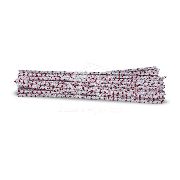 Limpia pipas de colores. Con una longitud de 14,5 cms También llamados escobillones, escobillas o chenilla y gracias a la rigidez de su alambre interior y de color blanco con rojo, permite la creación de todo tipo de objetos.